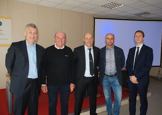 In foto: da sx Raffaele Drei, vice presidente Opera e presidente Agrintesa di Faenza (Ra); AtosBortolotto vice presidente Opera e presidente dell’omonima cooperativa Opera di Ferrara; Adriano Aldrovandi, presidente Opera e presidente Fruit Modena Group di Campogalliano (Mo); Piero Emiliani, vice presidente Opera e presidente PATFrut di Monestirolo (Fe); Luigi Mazzoni, vice presidente Opera e consigliere Gruppo Mazzoni di Ferrara.