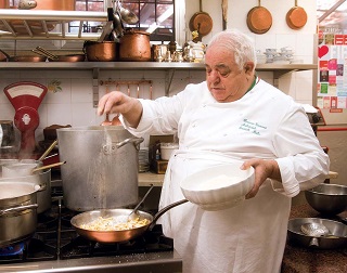 A chi vi entra per la prima volta il ristorante Ambasciata pare, secondo la definizione che ne diede Lucio Dalla, il bar di Guerre Stellari: uno sfarzoso anfiteatro fatto di mazzi di fiori, zuppiere e tortiere d’argento, libri. Un fasto quasi maniacale che non perde però nemmeno per un istante l’eleganza. E una volta seduti è come fare un viaggio nel tempo con Francesco Tamani che accoglie chiunque con spesse fette del salame all’aglio maturato a Quingentole, scaglie di Parmigiano Reggiano di Quistello e ciccioli di maiale. Dalla cucina a vista Romano non perde mai d’occhio la sala. Alcuni dei loro piatti hanno segnato un’epoca della gastronomia italiana: la faraona del Vicariato di Quistello con uva, arancia e mostarda di mele con melograno e menta; l’anatra croccante al forno con patate e salsa di ciliegie, spettacolare realizzazione agrodolce. Ormai entrato negli annali lo zabaione tirato davanti agli ospiti in una piccola casseruola di rame. Innovazione? La si vada a cercare altrove: i piatti sono opulenti per materia prima e traboccano di storia, ma soprattutto l’Ambasciata racconta l’autenticità della tradizione (che in campagna coincide spesso con l’attività di raccolta libera come per i funghi e le lumache) e rappresenta il miglior luogo per leggere il cibo come cultura. Qui più che altrove si respirano i fasti rinascimentali che fecero grande il ducato di Mantova, su nessun tavolo sono passate più teste coronate e personaggi dello spettacolo, dello sport, della Cultura quella appunto della ‘C’ maiuscola. E l’Ambasciata è ancora così: con i suoi eccessi, i suoi onirici arredamenti, il desiderio sempre esaudito di rendere unica un’occasione, un momento da ricordare. Fuori, a pochi passi, c’è l’argine del Secchia e il paesino ferito dal terremoto del 2013. Purtroppo qualcosa simile a Guerre stellari pare sia accaduto per davvero…
