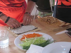 Menu: Tortillas di mais, Insalata di verdura con maionese di tofu, Paella di quinoa, con verdure e tempeh, Involtini di cavolo cinese al sesamo, Mousse di mele e mandorle con croccante. Il costo di 55 euro a persona include il corso, la dispensa e la cena con i piatti cucinati. Prenotazione obbligatoria