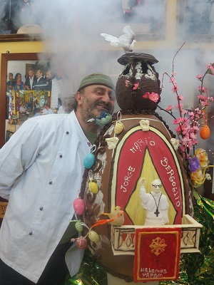 Il pasticciere sorrentino, Antonio Cafiero realizza un maxi uovo di cioccolato ispirato a Papa Francesco