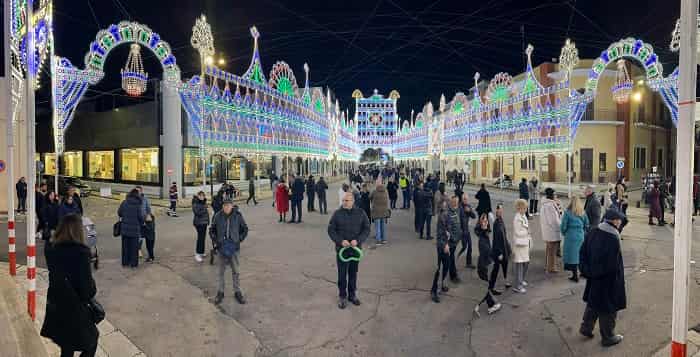 Nel Salento, villaggi e strutture ricettive propongono agli ospiti ingressi scenografici con gallerie di luminarie, mentre in molte case si accendono rosoni, simbolo di identità, calore e ospitalità pugliese. Questa tradizione di luce riflette l’anima di un popolo che ogni giorno si risveglia con la prima alba d’Italia sulla costa adriatica.