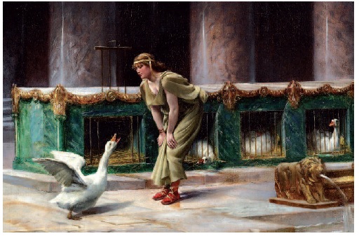 Vi sono tantissime leggende legate alla storia dell’Antica Roma. Riguardano i temi più disparati, dai suoi natali alle battaglie che nei secoli riguardarono quella che fu per molto tempo una delle città più importanti, ricche e potenti al mondo. Una delle leggende più famose è legata all’assedio di Roma da parte del popolo dei Galli. Questa storia, a metà tra i reali avvenimenti storici e le credenze popolari, riguarda l’assedio di Roma da parte dei barbari, in particolare del popolo dei Galli Senoni, che cercavano di conquistare la città sotto la guida del loro re, Brenno. Il Campidoglio è, tra i sette colli che incorniciano Roma, il meno alto ed il più piccolo, ma probabilmente anche quello che è compreso nel maggior numero di leggende e di avvenimenti storici. Questo perché fin dall’antichità il Campidoglio fu un importante centro per la vita sia politica che religiosa di Roma. Ai tempi della vicenda, che possiamo collocare intorno al 390 a.C., su questo colle sorgeva un tempio dedicato alla dea Giunone, che ospitava una serie di oche, animali sacri alla dea e per questo intoccabili. Roma era ormai stremata dal lungo assedio a cui l’esercito dei Galli la stava sottoponendo ormai da molto tempo, senza che le sorti della battaglia fossero chiare. I Romani stavano soffrendo le pene della fame a tal punto, che cominciava a manifestarsi tra il popolo l’idea di nutrirsi proprio delle oche del Campidoglio, dopo che tutti gli altri animali presenti nei dintorni erano stati uccisi e cucinati. Tuttavia, essendo le oche sacre a Giunone, non osavano farlo per paura di offendere la dea e di perdere i suoi favori. Non uccidere le oche del Campidoglio si rivelò una mossa vincente, in quanto queste finirono con l’avvertire i Romani del fatto che i Galli stavano scalando i muri della rocca in cui erano asserragliati i Romani. Infatti una notte Marco Manlio, un soldato che dormiva presso il tempio di Giunone, sentì le oche starnazzare, subito si alzò e corse alle mura della rocca. Si scontrò con un Gallo che insieme agli altri stavano scalando la rocca, affrontò il primo e gli strappò le dita. Intanto le oche continuavano a starnazzare e così svegliarono tutto l’esercito che si precipitò a dare man forte a Marco Manlio e combattendo con grande energia respinse i Galli. Così il Campidoglio fu liberato dal pericolo dei barbari, e Roma fu salvata dagli strepiti delle oche. Non sappiamo quanto ci sia di vero nella leggenda delle oche, comunque la storia dell’assedio del Campidoglio da parte dei Galli è ben documentata.
