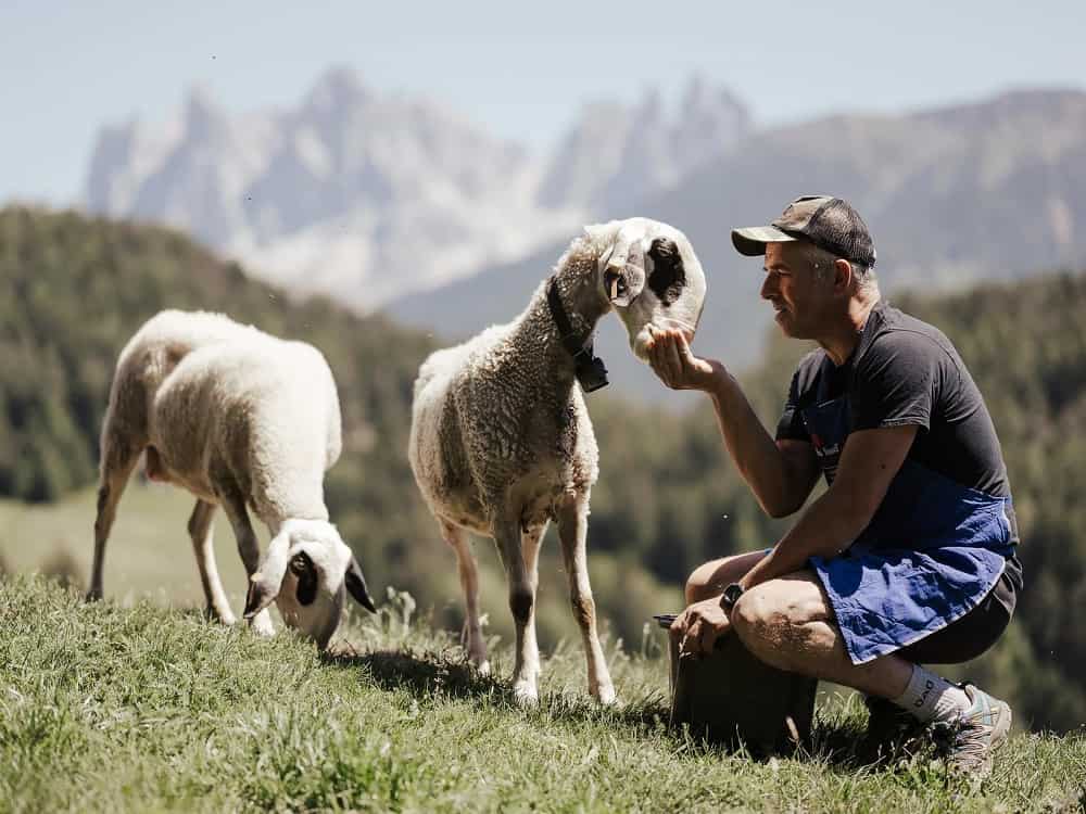 Del resto, è innegabile che la creatività è appaiata a professionalità, rispetto per le tradizioni e per le proprie origini: questo incontro illuminato partorisce prodotti di alto valore che vanno dai latticini alle uova, dagli ortaggi alla frutta, dal pesce alla selvaggina. Senza dimenticare le carni. Tra le più pregiate in questi luoghi c’è la Villnösser Brillenschaf (che letteralmente significa “pecora con gli occhiali della Val di Funes”), la razza ovina più antica del Sudtirolo. Una carne di pecora di grande qualità, grazie soprattutto all’alimentazione naturale basata sull’erba dei pascoli.
