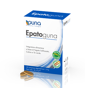 E’ in questo quadro che s’inserisce Epatoguna, una soluzione nutraceutica a base di fegato liofilizzato di 3 suino Neorland® . Questo integratore alimentare è ricco di colina – nutriente essenziale appartenente al gruppo di sostanze lipotrope, utile a mantenere la funzione epatica in salute favorendo, in particolare, il metabolismo intraepatico dei lipidi e il controllo dell’omocisteina – e di estratto di thè verde, protettivo e antiossidante per il parenchima epatico: il prodotto, grazie all’azione sinergica dei suoi componenti attivi, contribuisce quindi a mantenere la fisiologica funzionalità epatica.