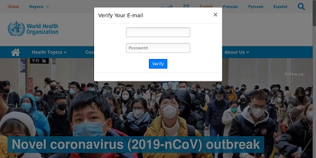 WHO spoofed landing page