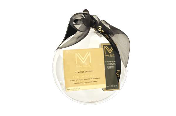All’interno della confezione regalo troviamo una crema anti-invecchiamento tecnologicoda 50 ml e, in omaggio, un campione da 15 ml di gel contorno occhi, entrambi della lineaTIME EXPERTISE, pensata per rallentare il processo di invecchiamento tecnologico. Questi prodotti mettono in campo l’attività sinergica di due principi attivi altamente specifici di origine naturale: uno antiossidante, contro l’inquinamento atmosferico, che mantienel’integrità e la vitalità cellulare, l’altro contro le radiazioni elettromagnetiche responsabili del riscaldamento della pelle con conseguente diminuzione del collagene e calo di elasticità.