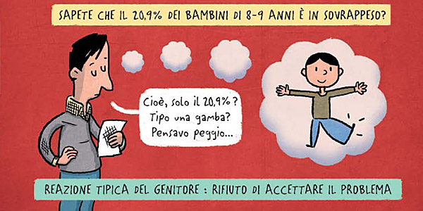 L’indagine Okkio alla Salute 2014, condotta da Ministero e Istituto superiore di sanità, conferma livelli ancora elevati di eccesso ponderale tra i bambini di 8-9 anni con il 20,9% dei bambini in sovrappeso e il 9,8% in condizioni di obesità, con percentuali più alte nelle regioni del centro e del sud Italia. Inoltre è risultato che che molti genitori non hanno la percezione che il propio figlio è in sovrappeso.